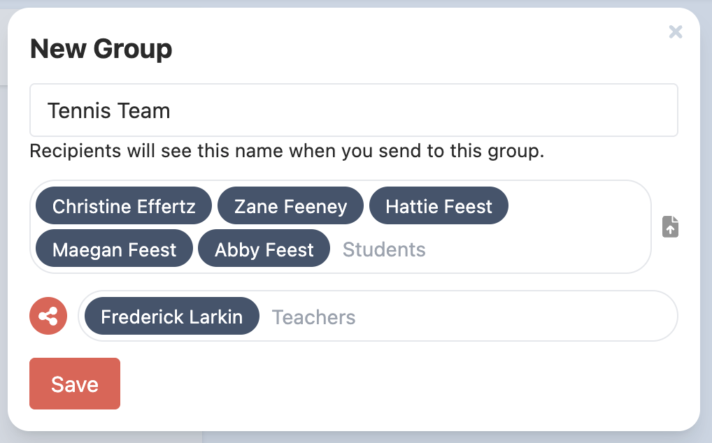 Next create groups of students that each staff member should have access to. IE a group for the tennis team. Then share that group with the coach. This step might be done by the athletic director or a secretary.
