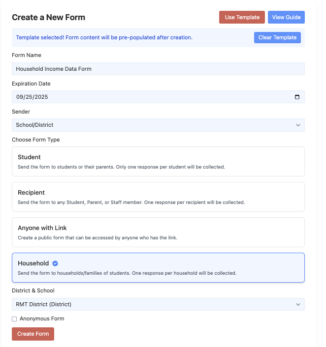 You will also choose whether to send the form districtwide or by school.