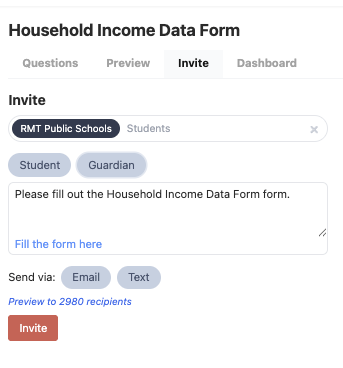 You can select the target audience based on your form type. This may include students, guardians, staff, or any combination.