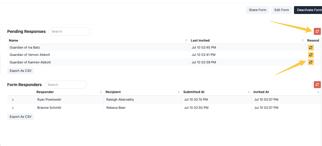 Use the Resend button to automatically send reminders to anyone who has not completed the form