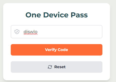 On the device you would like to use for One Pass Device go to OrangesPasses.com/oneDevice enter the generated code into the text box and click verify code.