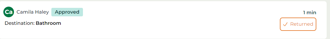 Once the student has returned they will click the returned button on the pass card.