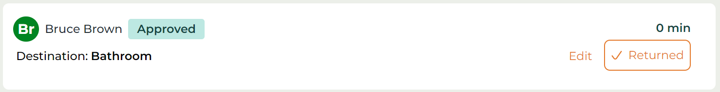 • Returned: The student has returned to their original location. Click Returned to update the timeline when they arrive back with you.