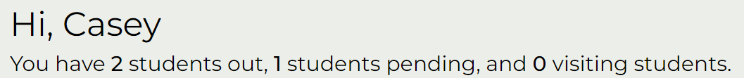At the bottom of the page, a footer displays the total number of students currently out across the entire school.