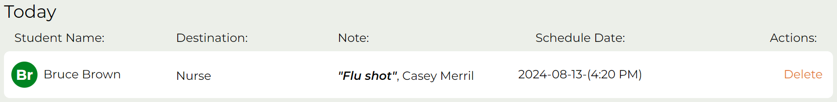 The Scheduled Pass page allows teachers to view and create scheduled passes for students. You can access this page from the navigation bar under Create a Pass and then Create Scheduled Pass, or by selecting View Passes and choosing View Scheduled Appointments.