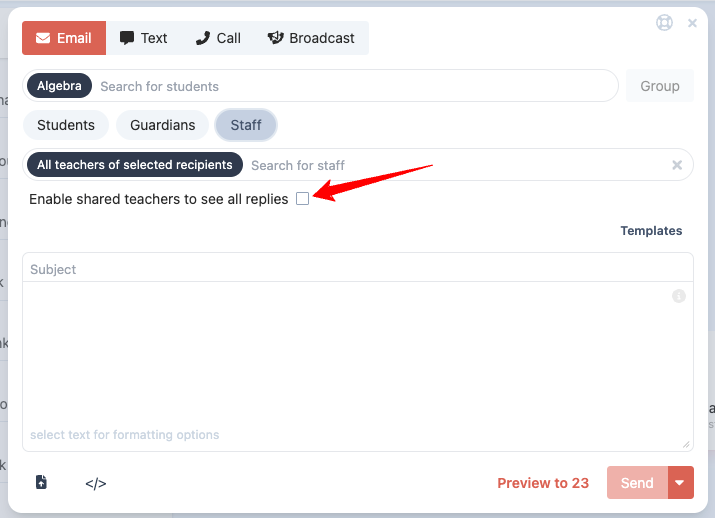 Teachers can see who else is included on the message.