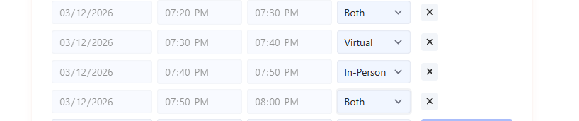 Just like you can make selective times for ML conferences, you can do this for marking some times/days in person, virtual or both.
